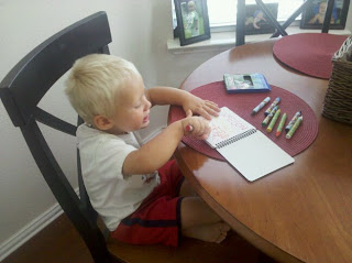 he was being soooo good coloring at the table on his paper...